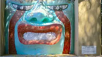 ![]() Réplica de una de las enormes cabezas escultóricas polícromas halladas en el templo de Moxeke | ||