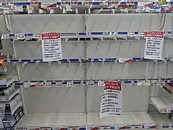 - ↑ Takahashi, Ryusei (31 de enero de 2020). «Amid virus outbreak, Japan stores scramble to meet demand for face masks». ISSN 0447-5763. Archivado desde el original el 1 de febrero de 2020. Consultado el 1 de febrero de 2020.