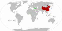 El 31 de enero, el gobierno turco envió un avión para aerotransportar 34 ciudadanos turcos, siete Azerbaiyanos, siete georgianos y un albanés desde Wuhan.[20] China ordenó 200 millones de máscaras a Turquía, además de la producción anual de Turquía de 150 millones de máscaras.[21]