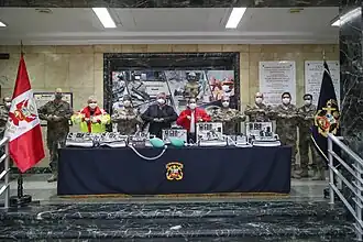 Miembros de la Operación Tayta en San Juan de Lurigancho, la FAP transporta suministro médico y ventiladores mecánicos a Jaén y Cajamarca, habilitación de área de hospitalización en Moquegua e Ilo, apertura de la plataforma digital «Te cuido Perú» realizada por el Ministerio de Defensa, inicio de la primera jornada de vacunación, la FAP alista los primeros lotes de vacuna con destino a diversas regiones del país, habilitación temporal de la Villa Essalud Panamericana durante la pandemia de COVID-19.