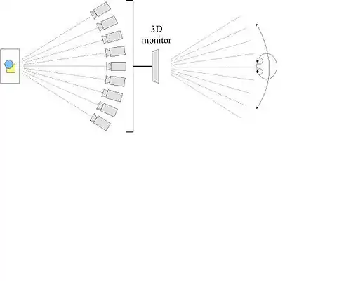 Los sistemas anteriores de la proyección de imagen del tiempo real 3D que no requieren "gafas" no han sido ideales para los usos del consumidor tales como televisión 3D, juegos 3D, presentaciones vídeo 3D que anunciaba, o 3D, ni tener los ideales para muchos usos del consumidor tales como proyección de imagen de la computadora 3D. De esos sistemas, las pantallas autoestereoscópicas en tiempo real que presentan solamente una opinión del ojo izquierdo y una opinión del ojo derecho son difíciles de utilizar porque necesitan ser vistos de localizaciones específicas de la visión. Las pantallas autostereoscópicas del arte anterior que son capaces de seguir los ojos de un espectador y dirigir cada imagen hacia el ojo apropiado soluciona el problema, pero a expensas de complicación de un sistema que sigue principal agregado. Con todo incluso una pantalla autostereoscópica no puede acomodar fácilmente espectadores simultáneos múltiples, puesto que los espectadores múltiples mueven sus cabezas independientemente. La mejor solución es una pantalla automultiescópica que presenta muchas opciones. La pantalla automultiescópica exhibe típicamente el presente muchas vistas de una imagen, permitiendo que los observadores se muevan libremente y que consideren nuevas perspectivas por medio de horizontal, y a veces la vertical.