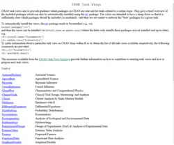 - Vistas de tareas de CRAN, listado de paquetes de CRAN por temas