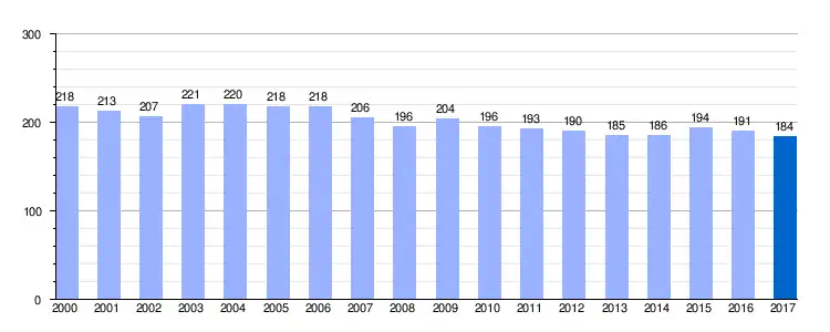 | Gráfica de evolución demográfica de Paradela del Río entre 2000 y 2017 |