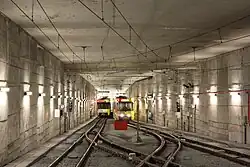 Trenes estacionados en ambos andenes | ||||||||||||||||||||||||||||||