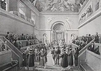 Las Cortes de Madrid de 1833 fueron las últimas convocadas con los criterios propios del Antiguo Régimen. Apelando a la antigua usanza y leyes de Castilla, convocó Fernando VII Cortes para que jurasen como princesa de Asturias a su hija Isabel (la futura Isabel II de España). Reunidas en el Real Monasterio de San Jerónimo prestaron el juramento.[10] En el contexto del final de su reinado, cuando se estaba produciendo la aproximación entre los elementos más moderados de los absolutistas y de los liberales, se vio en esta convocatoria un síntoma de apertura política, que se confirmó en el periodo siguiente.