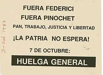 Folleto llamando a huelga general el 7 de octubre de 1987. | ||