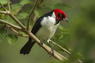 - ↑ a b BirdLife International (2016). «Paroaria gularis». Lista Roja de especies amenazadas de la UICN 2018.2 (en inglés). ISSN 2307-8235. Consultado el 31 de enero de 2019.