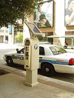 Un parquímetro o estacionómetro[1] es un dispositivo ubicado en la vía pública que permite el ordenamiento y medición del estacionamiento en áreas definidas para ello. Su función consiste en recolectar dinero a cambio del derecho de estacionar un vehículo en un lugar público, por una cantidad de tiempo. Los parquímetros pueden ser usados por las municipalidades o ayuntamientos como una herramienta para hacer valer sus políticas de estacionamiento en la calle, que por lo general están relacionadas con el tráfico y las políticas de gestión de movilidad.
