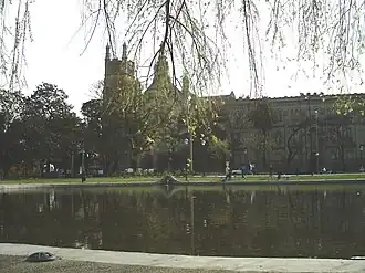 - La manzana central está bordeada por la avenida Vélez Sársfield, la avenida Iriarte, Luzuriaga y California. Su rasgo distintivo es el histórico lago, frente a la Basílica del Sagrado Corazón.