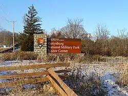 El Parque Militar Nacional de Gettysburg protege e interpreta el paisaje de la Batalla de Gettysburg de 1863 durante la Guerra de Secesión de los Estados Unidos. Ubicado en Gettysburg, Pensilvania, el parque es administrado por el Servicio de Parques Nacionales.[2] Las propiedades de parque nacional incluyen la mayor parte del campo de batalla de Gettysburg, muchas de las áreas de apoyo empleadas durante la batalla (p. ej., zonas de reserva, suministros y ubicaciones de hospitales) y varias otras áreas no relacionadas con la batalla, asociadas con las «secuelas y conmemoraciones» de la misma, incluido el Cementerio Nacional de Gettysburg. Muchos de los 43 000 artefactos de la Guerra de Secesión del parque se exhiben en el Museo y Centro de Visitantes de Gettysburg.