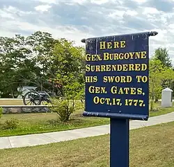 En 2021, la gestión del lugar donde se rindió el ejército británico fue transferida al Servicio de Parques Nacionales.[2][3]​ El Parque Conmemorativo del Sitio de Rendición de Saratoga marca el lugar preciso donde el general británico John Burgoyne entregó su ejército al general Horatio Gates el 17 de octubre de 1777.[2]​ El parque de 19 acres está ubicado nueve millas al norte de Saratoga Battlefield Park y media milla al sur de Schuylerville en la ruta estadounidense 4.[2]​ El parque incluye placas explicativas y señalización, y dos cañones.