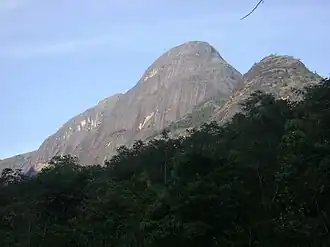 Los bosques montanos tropicales aparecen en elevaciones más altas y están entremezclados con praderas de montaña, formando un complejo de pradera-shola. Gran parte del bosque perenne original contiene ahora plantaciones de teca introducidas por el hombre. Bambúes y juncales aparecen en los bosques naturales. La cubierta forestal la proporcionan árboles de las especies Hopea parviflora, Mesua ferrea, Calophyllum tomentosum, Vateria indica, Cullenia excelsa y mango o melocotón de los trópicos, Machilus macrantha, Alstonia scholaris, Evodia meliaefolia, Ailanthus, algodonero rojo y eucalipto rosado. La zona es el hogar de Podocarpus wallichianus, una rara especie de conífera de la India meridional.[1]
