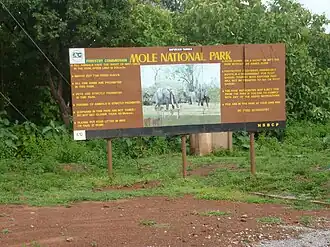 Parque Nacional Mole (del inglés: Mole National Park) es el refugio de vida silvestre más grande del país africano de Ghana.[1] El parque está situado en el noroeste de Ghana, en una sabana de pastizales y de ecosistemas ribereños, a una altitud de 150 m, con un fuerte escarpe que forma el límite sur del parque. La entrada del parque es accesible a través de la cercana ciudad de Larabanga.[2] Los efímeros ríos Mole y Lovi fluyen a través del parque, dejando tras de sí sólo agujeros con agua durante la larga estación seca.[3]