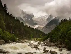 El principal valle fluvial que atraviesa el parque es el río Urukh, alimentado por el glaciar Karaugom y numerosos afluentes glaciares. El glaciar Karaugom tiene 1,3 km de longitud y 26,6 km de superficie. En cuanto a la elevación, el glaciar alcanza desde los 3.440 metros en la parte superior hasta los 1.830 metros en la parte inferior de la lengua, una altura de 1.610 metros.[5] Un estudio reciente asocia al glaciar con un aumento de las temperaturas en el Cáucaso Central de 0,05 grados C por año, y un retroceso glacial medio de 8 metros por año.[6] Además, el Karaugom desciende a una altitud inferior a la de cualquier otro glaciar del Cáucaso, adentrándose en la zona boscosa.[2]