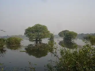 Los matorrales están dominados por "ber" y "kair" (Capparis decidua).[2] Es improbable que este lugar sostuviera tan elevado número de aves acuáticas como lo hace sin el añadido de agua de Ajan Bund, un embalse hecho por el hombre. Los suelos son predominantemente aluviales - algo de arcilla se ha formado como resultado de inundaciones periódicas. La precipitación media anual es de 662mm, con lluvia cayendo de media 36 días al año.