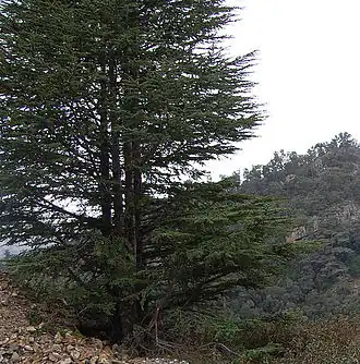 Especies forestales mayores: El cedro del Atlas (Cedrus atlantica), el quejigo (Quercus faginea), el alcornoque (Quercus suber), la encina (Quercus ilex subsp. rotundifolia) y la tuya de Berbería (Tetraclinis articulata). El número total de especies alrededor de 600, de las cuales numerosas endémicas, y unas 50 notables, raras o muy raras.[1]