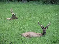 En cuanto a los uapitíes, en 2007 se calcularon en más de 30 000, lo que supone ser el mamífero con mayor número de individuos de todo el parque. Sin embargo, la manada ubicada en el norte ha ido decreciendo en población de forma notoria, debido en parte a los ataques de lobo o a efectos causales, como ocultarse entre los bosques para evitar se víctima de depredadores, lo que hace más difícil el adecuado conteo por parte de los investigadores.[81] Al mismo tiempo, en 2003 se hallaron rastros que fueron seguidos durante más de 2 millas (3,2 km) y resultaron ser de una lince hembra y su cachorro, una vez confirmado a partir de heces, entre otras pruebas. No obstante, no se pudo realizar ningún contacto visual y no han sido observados en el Yellowstone desde 1998, aunque pruebas de ADN a partir de muestras de pelo obtenidas en 2001 afirman que los linces, como mínimo, transitan por el parque.[82] Otras especies cuya presencia es poco común son las del puma, cuya población se estima en solo veinticinco individuos,[83] y la del carcayú, con datos desconocidos.[84]