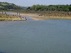 ![]() Ría desde la orilla de Trasvía, con la marisma Zapedo y Oyambre al fondo. | ||