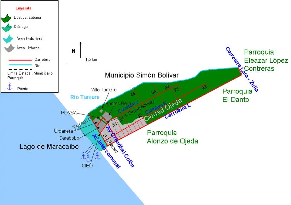Se encuentra ocupada por la población de Tamare, Sectores como Maria Auxiliadora, La L, Primavera I y II, 1.° de Mayo, 19 de Abril, Urbanizaciones como la Nueva Venezuela y Barrios como el Nuevo Porvenir, áreas rurales - industriales compuesta por pozos petrolíferos. Considerando que en Tamare se encuentra la sede de la mayoría de las empresas contratistas petroleras que operan en el Zulia, al igual a sectores aledaños al mismo; la localidad posee a su vez muelles industriales.