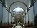 La cúpula es de forma octagonal (ocho gajos), se soporta por un gran cimborrio de ventanas y cuatro arcos torales, que forma la estructura central de todo el templo. En centro cuelga un gran candil donde se distribuye las cuatro bóvedas de cañón.