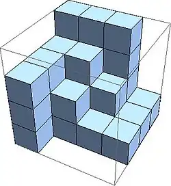 - ↑ Mills, Robbins, Rumsey (1986). «Self-Complementary Totally Symmetric Plane Partitions». Journal of Combinatorial Theory, Series A 42 (2): 277-292. doi:10.1016/0097-3165(86)90098-1.