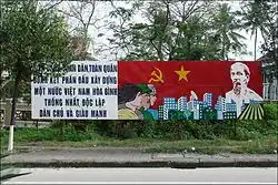Vietnam es una república socialista con un sistema de partido único dirigido por el Partido Comunista. El PCV defiende el marxismo-leninismo y el pensamiento Hồ Chí Minh, las ideologías del difunto Hồ Chí Minh. Las dos ideologías sirven de guía para las actividades del partido y el estado.[69] Según la Constitución, Vietnam se encuentra en un período de transición al socialismo.[70] El marxismo-leninismo se introdujo en Vietnam en las décadas de 1920 y 1930, y la cultura vietnamita ha sido liderada bajo las banderas del patriotismo y el marxismo-leninismo.[71] Las creencias de Hồ Chí Minh no fueron sistematizadas durante su vida, ni esto ocurrió rápidamente después de su muerte. La biografía de Hồ de Trường Chinh en 1973 enfatizó sus políticas revolucionarias. Los pensamientos de Hồ fueron sistematizados en 1989 bajo el liderazgo de Nguyễn Văn Linh.[72] El pensamiento Hồ Chí Minh y el marxismo-leninismo se convirtieron en las ideologías oficiales del PCV y del Estado en 1991.[73] El reclamo de legitimidad del PCV se mantuvo después del colapso del comunismo en otros lugares en 1989 y la disolución de la Unión Soviética en 1991 por su compromiso con los pensamientos de Hồ Chí Minh, según Sophie Quinn-Judge.[74] Según Pierre Brocheux, la ideología estatal actual es el pensamiento Hồ Chí Minh, con el marxismo-leninismo jugando un papel secundario.[75] Algunos afirman que el pensamiento Hồ Chí Minh se usa como velo para una dirección de partido que ha dejado de creer en el comunismo, pero otros lo descartan sobre la base de que Hồ Chí Minh fue un ávido partidario de Lenin y la dictadura del proletariado. Otros ven el pensamiento Hồ Chí Minh como un término político paraguas cuya función principal es introducir ideas y políticas no socialistas sin cuestionar la legalidad socialista.[73]