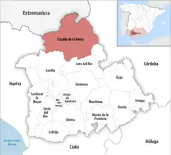 | 2 | Cazalla de la Sierra[3] | Alanís , Almadén de la Plata, Cazalla de la Sierra, Constantina, Guadalcanal, Las Navas de la Concepción, El Pedroso, El Real de la Jara y San Nicolás del Puerto. |