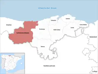 ![]() Extensión del partido judicial de San Vicente de la Barquera respecto a la comunidad autónoma. | ||