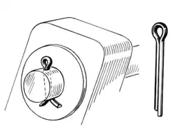 Los pasadores de bloqueo del martillo se instalan correctamente golpeando la cabeza con un martillo para asegurar el pasador. Esto fuerza la pata más corta hacia delante, extendiendo el pasador.[4]