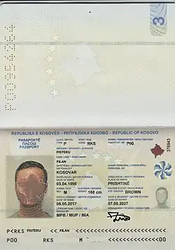 - ↑ a b c d e «Travel documents». Embajada de Kosovo en Ottawa (en inglés). Archivado desde el original el 22 de septiembre de 2020. Consultado el 20 de noviembre de 2019.