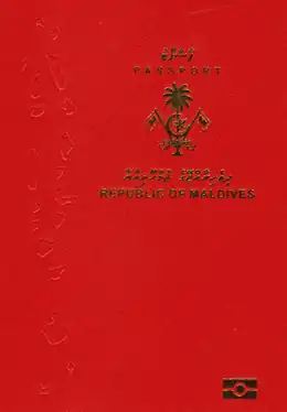 ![]() La portada de un pasaporte biométrico maldivo desde 2016 (con chip | ||