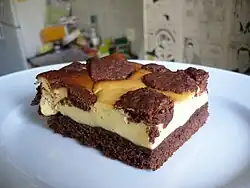 Tarta de queso thermomix.Pastel de queso con pedazos y piso de pastel de chocolate; una especialidad alemana conocida como Russischer Zupfkuchen.
