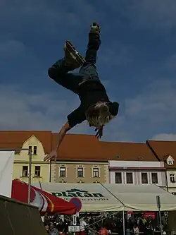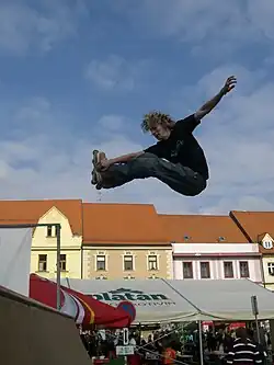 Es el cual se práctica en grandes rampas en forma de medias tuberías donde el mayor atractivo es realizar maniobras aéreas, alcanzar grandes alturas, hacer complejos giros o las llamadas voltereta hacia atrás, los cuales son girar de forma similar a la de una moneda lanzada al aire, llegándose incluso hasta el triple voltereta inversa. Otras variantes de este tipo de giros es la voltereta mortal (terror flip),consistente en un voltereta hacia atrás más 720 realizado por Pablo Scorpanich en demo Red Bull 1999 Argentina o giro vikingo, el cual es básicamente una voltereta inversa horizontal, y las aún más sorprendentes combinaciones de trucos aéreos, como la realizada por Eito Yasutoko, que consiste en voltereta inversa + 360 + voltereta inversa, todos ellos en una sola salida al aire.[3]