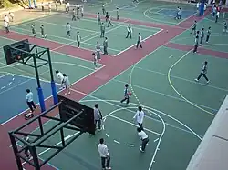Para edades más avanzadas, de ser posible es más conveniente colocar instalaciones deportivas, como campos de fútbol, pistas de balonmano, canchas de baloncesto, o al menos mesas de ping-pong, etc. teniendo en cuenta para su selección los deportes más populares en la comunidad. Los campos de juego se delimitan con las líneas reglamentarias de cada deporte que pueden llegar a cruzarse o superponerse para aprovechar al máximo el espacio, y cuentan con las porterías, las redes, las canastas, etc., necesarias para la práctica de cada deporte. La comunidad escolar suele proporcionar los balones o pelotas que los niños utilizan durante sus actividades en los recreos.