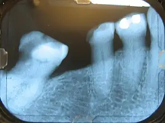 - ↑ Carranza, FA: Bone Loss and Patterns of Bone Destruction. In Newman, MG; Takei, HH; Carranza, FA; editors: Carranza’s Clinical Periodontology, 9th Edition. Philadelphia: W.B. Saunders Company, 2002. page 363.