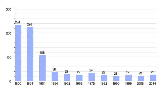 Los datos demográficos contemplados en este gráfico de la comuna de Pautaines-Augeville[4] se han cogido de 1800 a 1999 de la página francesa EHESS/Cassini, y los demás datos de la página del INSEE.[5]