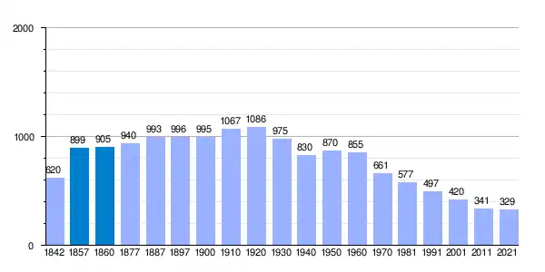 | Gráfica de evolución demográfica de Peñaflor de Hornija[4] entre 1842 y 2021 |