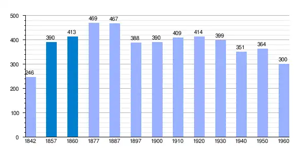 | Gráfica de evolución demográfica de Peñalba de San Esteban[4] entre 1842 y 1960 |