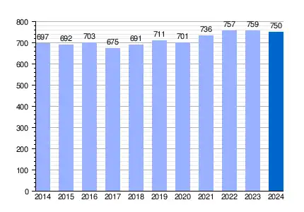 | Gráfica de evolución demográfica de Peñuelas entre 2014 y 2024 |
