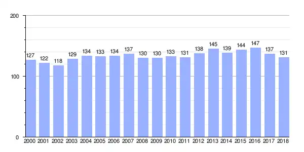 | Gráfica de evolución demográfica de Pedrós entre 2000 y 2018 |