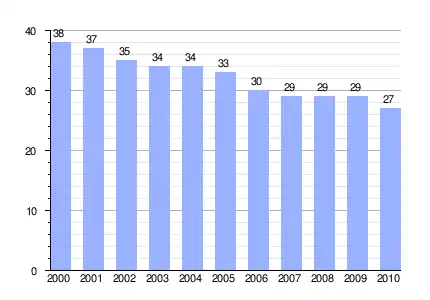 Población de derecho (2000-2010) según los censos de población del INE a 1 de enero de cada año.[4] |
