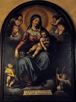 - 1568. Pinturas del retablo de la Virgen de los Remedios. Capilla del Cristo de las Siete Palabras. Iglesia de San Vicente. Sevilla. El retablo fue realizado por el escultor Jerónimo Hernández. Aunque no se conserva el retablo de Hernández, el retablo actual sí conserva las nueve pinturas realizadas por Villegas. La imagen central es la pintura de la Virgen de los Remedios.[24]
