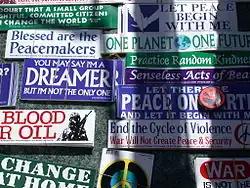 El «sticker art» (también conocido como etiqueta de bombardeo, bofetada de marcado, etiquetado y etiqueta) es una forma de arte callejero, una subcategoría de arte posmoderno en el que una imagen o mensaje aparece públicamente usando etiquetas adhesivas, encontrándose emparentado con la técnica del grafiti. Estas pegatinas pueden promover un programa político, comentario o cuestión social o política, una campaña de arte vanguardista, entre muchas otras temáticas. Suelen tener una frase o encontrarse representado un dibujo o «street logo», en ocasiones acompañado de la firma del autor, donde se quiere dar a conocer un ícono característico y romper con el gris de la ciudad.