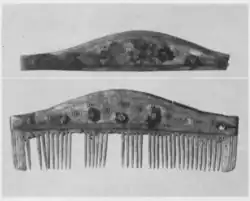 El peine está hecho de hueso, decorado con impresiones de pequeños círculos concéntricos y muestra una inscripción en la que se mezclan runas del futhark antiguo y el futhark joven.[2] La inscripción consta de tres líneas de texto, pero no está del todo claro en que sentido se tienen que leer, o si todas las líneas deben leerse en la misma dirección.[1] El peine ha sido objeto de varias discusiones académicas y su inscripción ha sido interpretada de varias maneras, aunque la mayoría de los expertos aceptan que se lee la palabra germánica alu, que se usaba en encantamientos, y Nanna, aunque hay dudas sobre si se trata del nombre de la diosa Nanna que aparece en otros registros.[2]