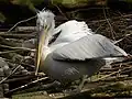 El pelícano ceñudo (Pelecanus crispus) es una especie de ave de la familia Pelecanidae.
