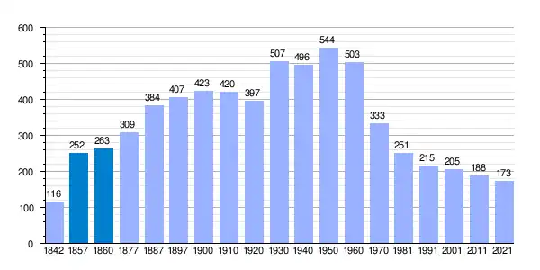 | Gráfica de evolución demográfica de Pelarrodríguez[5] entre 1842 y 2021 |