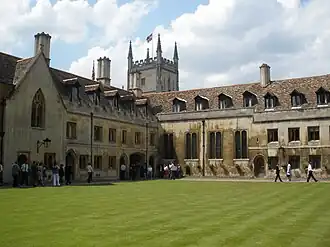 Los primeros edificios consistían en un único patio (ahora llamado Old Court) que contenía todas las partes de un college: capilla, salón, cocina y despensa, dormitorios de los profesores y dormitorios de los alumnos – y los estatutos les proveían de un cocinero, un barbero y una lavandera. Tanto la fundación del college como la construcción de la primera capilla de un college en la ciudad (1355) necesitaron de la concesión de una bula papal.