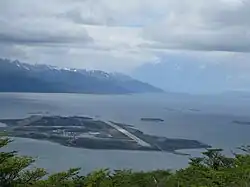 ![]() Vista de la península Ushuaia (a la derecha de la imagen) | ||