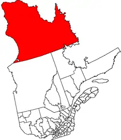 En 1895 el Parlamento canadiense dividió todos los Territorios del Noroeste en distritos, correspondiéndole a Quebec la zona situada al este del distrito de Ungava. Comprendía el actual territorio del Nord-du-Québec, incluida la península de Ungava, parte de la Abitibi-Témiscamingue, incluidas las zonas de captación de los ríos de la bahía de James, parte de la región de North Shore, la de las aguas que fluyen hacia el norte, y el interior de la tierra Labrador al norte del río Churchill.
