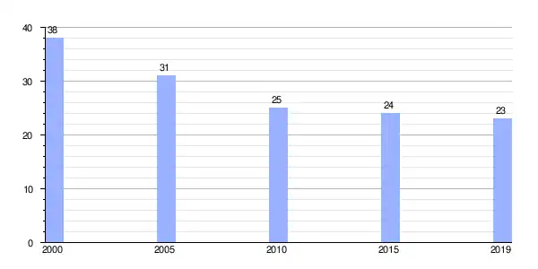 | Gráfica de evolución demográfica de Penarrubia (aldea) entre 2000 y 2019 |